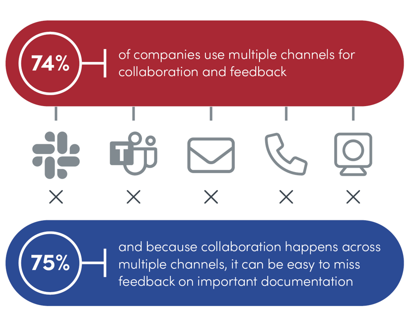 The use of multiple channels appears to have worrying consequences. 75% of respondents agreed that, because collaboration happens across multiple channels, it can be easy to miss feedback on important documentation and content.Even when feedback is accurately captured, it can be a slow process, with 72% of respondents saying that it takes a long time for feedback to be captured and collated across different channels.